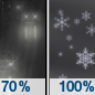 Temperature: 26°F Wind Speed: 14 to 17 mph Wind Direction: S Forecast: Rain before 4am, then a chance of snow between 4am and 5am, then a chance of rain. Cloudy. Low around 26, with temperatures rising to around 40 overnight. South wind 14 to 17 mph, with gusts as high as 30 mph. Chance of precipitation is 100%. Little or no snow accumulation expected. |
