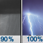 Temperature: 57°F Wind Speed: 10 to 15 mph Wind Direction: S Forecast: Showers and thunderstorms. Mostly cloudy, with a high near 57. South wind 10 to 15 mph, with gusts as high as 26 mph. Chance of precipitation is 100%. |