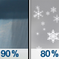 Temperature: 34°F Wind Speed: 6 to 12 mph Wind Direction: SSE Forecast: Snow showers after 10am. Mostly cloudy, with a high near 34. South southeast wind 6 to 12 mph. Chance of precipitation is 90%. New snow accumulation of 2 to 4 inches possible. |