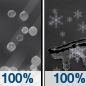 Temperature: 14°F Wind Speed: 8 mph Wind Direction: NNE Forecast: Snow before 10pm, then snow and a slight chance of sleet between 10pm and midnight, then snow and sleet and a slight chance of freezing rain. Cloudy. Low around 14, with temperatures rising to around 16 overnight. North northeast wind around 8 mph. Chance of precipitation is 100%. New snow accumulation of 1 to 3 inches possible. |