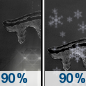 Temperature: 28°F Wind Speed: 6 to 13 mph Wind Direction: S Forecast: A chance of rain showers before 7pm, then freezing rain between 7pm and 1am, then snow. Cloudy, with a low around 28. Chance of precipitation is 90%. |
