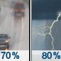 Temperature: 57°F Wind Speed: 7 to 12 mph Wind Direction: SSE Forecast: Rain likely before 4pm, then showers and thunderstorms. Cloudy, with a high near 57. |