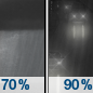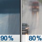 Temperature: 38°F Wind Speed: 5 to 9 mph Wind Direction: S Forecast: Rain likely. Mostly cloudy, with a low around 38. |