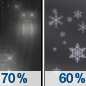 Temperature: 39°F Wind Speed: 9 mph Wind Direction: S Forecast: Rain likely before 4am, then rain and snow likely. Mostly cloudy, with a low around 39. |