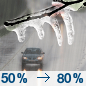 Temperature: 40°F Wind Speed: 2 to 6 mph Wind Direction: S Forecast: Rain and a slight chance of freezing rain. Cloudy, with a high near 40. Chance of precipitation is 80%. |