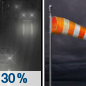 Temperature: 27°F Wind Speed: 15 to 25 mph Wind Direction: W Forecast: A chance of rain before 7pm. Cloudy, with a low around 27. Chance of precipitation is 30%. |