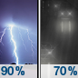 Temperature: 40°F Wind Speed: 6 mph Wind Direction: SW Forecast: Showers and thunderstorms. Mostly cloudy. Low around 40, with temperatures rising to around 42 overnight. Southwest wind around 6 mph. Chance of precipitation is 90%. New rainfall amounts between a tenth and quarter of an inch possible. |