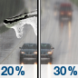 Temperature: 29°F Wind Speed: 7 to 13 mph Wind Direction: W Forecast: A chance of rain before 7pm, then a chance of rain showers between 7pm and 10pm, then a chance of snow showers between 10pm and 1am. Mostly cloudy, with a low around 29. Chance of precipitation is 40%. |