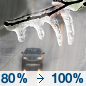 Forecast: Freezing rain and rain. Cloudy, with a low around 31. Chance of precipitation is 100%.