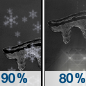Temperature: 34°F Wind Speed: 3 to 7 mph Wind Direction: E Forecast: A chance of snow and a chance of freezing rain and a slight chance of sleet between 7am and 1pm, then sleet and freezing rain and rain and snow. Cloudy, with a high near 34. Chance of precipitation is 90%. |