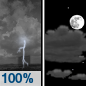 Forecast: Showers and thunderstorms before midnight. Partly cloudy, with a low around 30. West wind 5 to 15 mph, with gusts as high as 25 mph. Chance of precipitation is 100%.