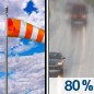 Temperature: 41°F Wind Speed: 12 to 28 mph Wind Direction: SW Forecast: Rain after 1pm. Mostly cloudy. High near 41, with temperatures falling to around 39 in the afternoon. Southwest wind 12 to 28 mph, with gusts as high as 41 mph. Chance of precipitation is 80%. |