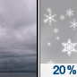 Temperature: 24°F Wind Speed: 12 mph Wind Direction: WSW Forecast: A slight chance of snow before 7pm. Mostly cloudy, with a low around 24. |