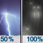 Temperature: 41°F Wind Speed: 6 to 10 mph Wind Direction: WSW Forecast: Showers and thunderstorms. Cloudy, with a low around 41. Chance of precipitation is 100%. |