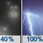 Temperature: 45°F Wind Speed: 5 to 15 mph Wind Direction: S Forecast: Rain between 7pm and 4am, then rain and a slight chance of thunderstorms. Cloudy. Low around 45, with temperatures rising to around 53 overnight. South wind 5 to 15 mph, with gusts as high as 40 mph. Chance of precipitation is 100%. New rainfall amounts between a half and three quarters of an inch possible. |