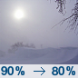 Temperature: 33°F Wind Speed: 5 to 10 mph Wind Direction: S Forecast: A chance of snow showers after 7am. Mostly cloudy, with a high near 33. |