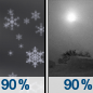 Temperature: 26°F Wind Speed: 5 mph Wind Direction: S Forecast: A chance of snow showers. Mostly cloudy, with a low around 26. |