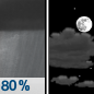 Temperature: 35°F Wind Speed: 5 mph Wind Direction: S Forecast: Mostly cloudy, with a low around 35. South wind around 5 mph. |