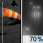 Temperature: 33°F Wind Speed: 17 to 30 mph Wind Direction: S Forecast: Rain likely after 1am. Mostly cloudy. Low around 33, with temperatures rising to around 43 overnight. South wind 17 to 30 mph, with gusts as high as 46 mph. Chance of precipitation is 70%. New rainfall amounts between a tenth and quarter of an inch possible. |