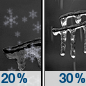 Temperature: 23°F Wind Speed: 5 mph Wind Direction: W Forecast: A slight chance of rain and snow before 7pm, then a chance of freezing rain. Mostly cloudy, with a low around 23. |