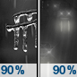 Temperature: 25°F Wind Speed: 5 to 8 mph Wind Direction: S Forecast: Freezing rain between 8pm and midnight, then rain. Cloudy. Low around 25, with temperatures rising to around 37 overnight. South wind 5 to 8 mph. Chance of precipitation is 90%. New ice accumulation of less than half an inch possible. |